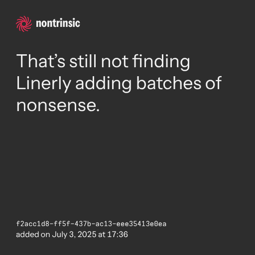 partagerThat’s still not finding Linerly adding batches of nonsense.