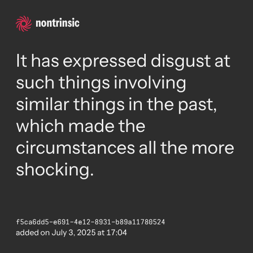 partagerIt has expressed disgust at such things involving similar things in the past, which made the circumstances all the more shocking.