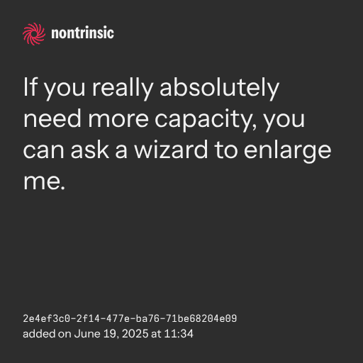 partagerIf you really absolutely need more capacity, you can ask a wizard to enlarge me.