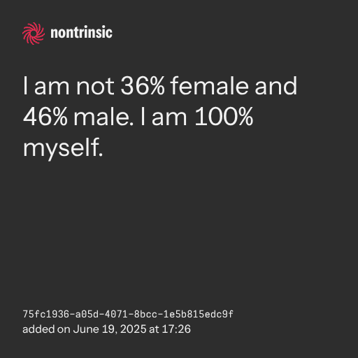 partagerI am not 36% female and 46% male. I am 100% myself.