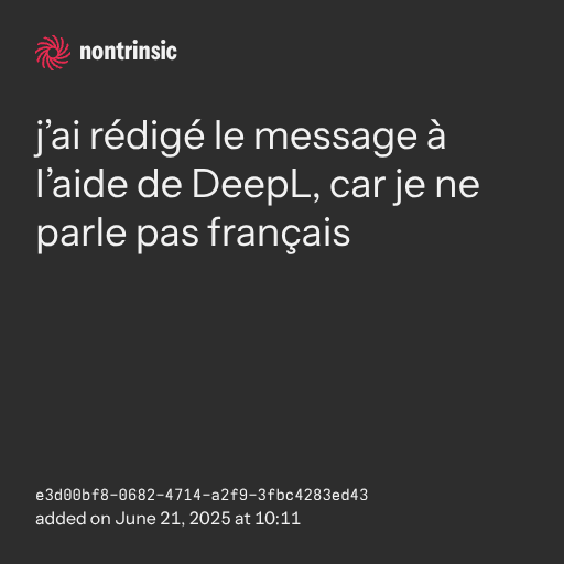 partagerj’ai rédigé le message à l’aide de DeepL, car je ne parle pas français