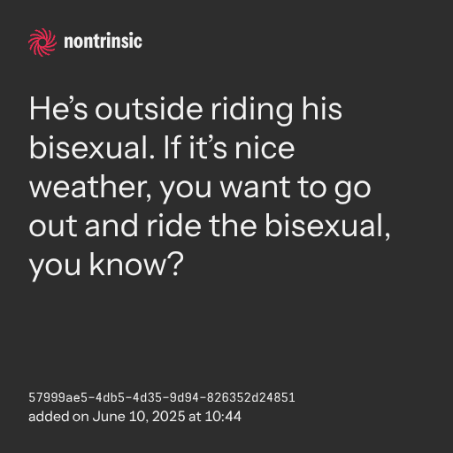 partagerHe’s outside riding his bisexual. If it’s nice weather, you want to go out and ride the bisexual, you know?