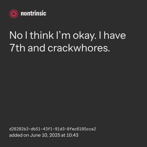 partagerNo I think I’m okay. I have 7th and crackwhores.