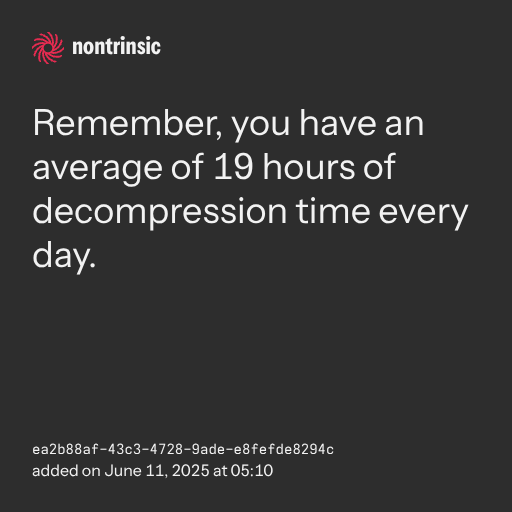 partagerRemember, you have an average of 19 hours of decompression time every day.