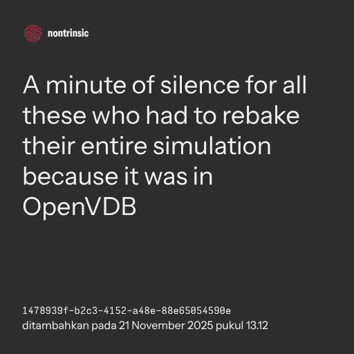 π€ bagikanA minute of silence for all these who had to rebake their entire simulation because it was in OpenVDB