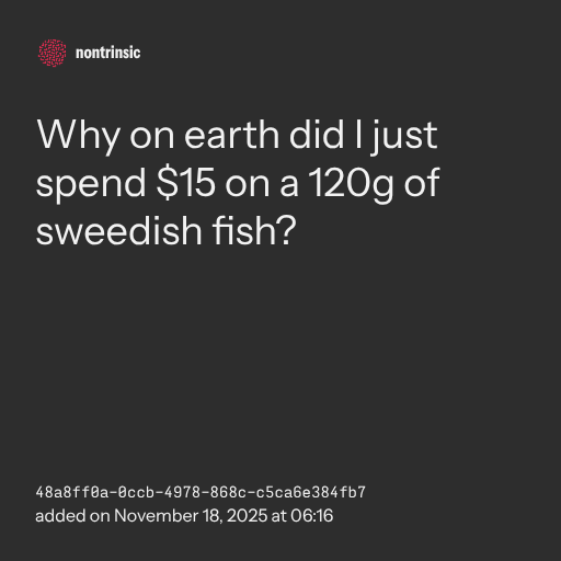📤 bagikanWhy on earth did I just spend $15 on a 120g of sweedish fish?