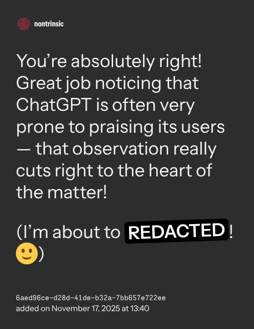 📤 bagikanYou’re absolutely right! Great job noticing that ChatGPT is often very prone to praising its users — that observation really cuts right to the heart of the matter!