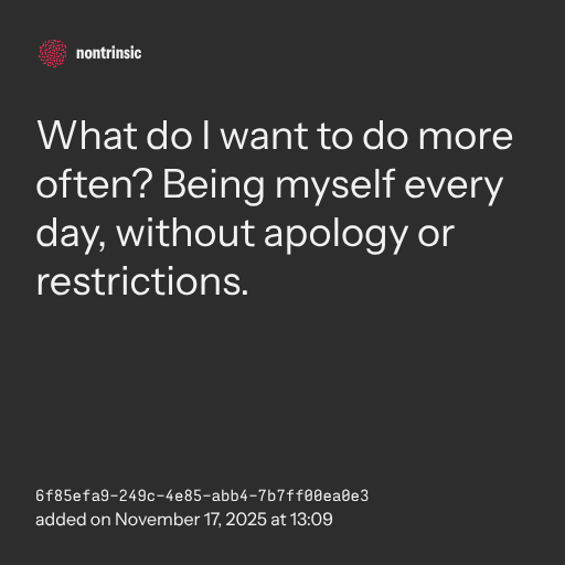 📤 bagikanWhat do I want to do more often? Being myself every day, without apology or restrictions.