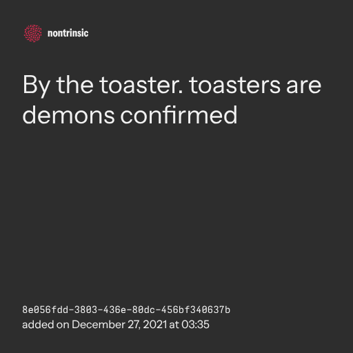 π€ bagikanBy the toaster. toasters are demons confirmed