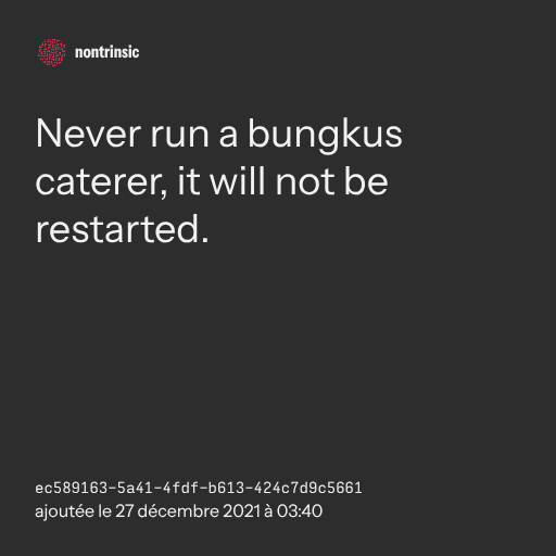 π€ bagikanNever run a bungkus caterer, it will not be restarted.