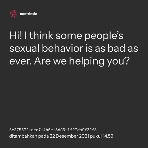 π€ bagikanHi! I think some people’s sexual behavior is as bad as ever. Are we helping you?