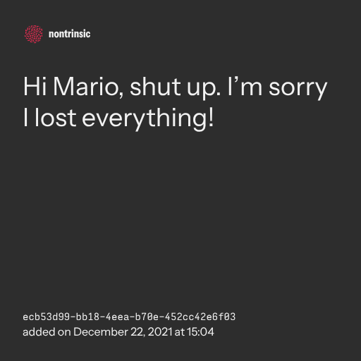 π€ bagikanHi Mario, shut up. I’m sorry I lost everything!