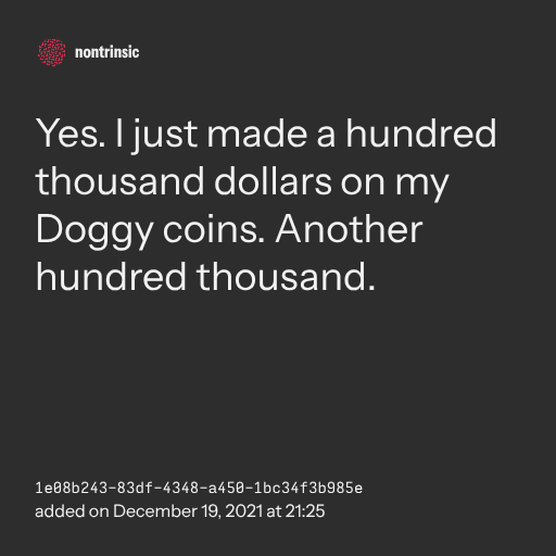 π€ bagikanYes. I just made a hundred thousand dollars on my Doggy coins. Another hundred thousand.