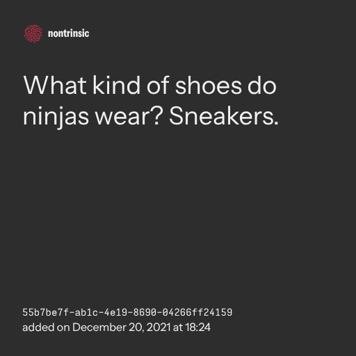 π€ bagikanWhat kind of shoes do ninjas wear? Sneakers.