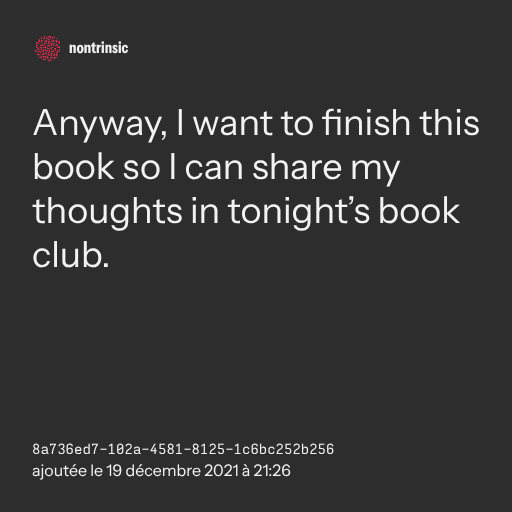 π€ bagikanAnyway, I want to finish this book so I can share my thoughts in tonight’s book club.