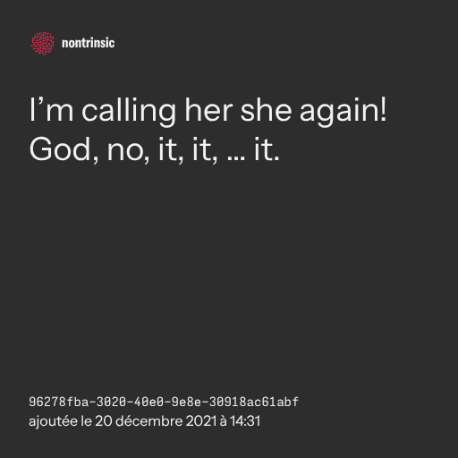 π€ bagikanI’m calling her she again! God, no, it, it, … it.