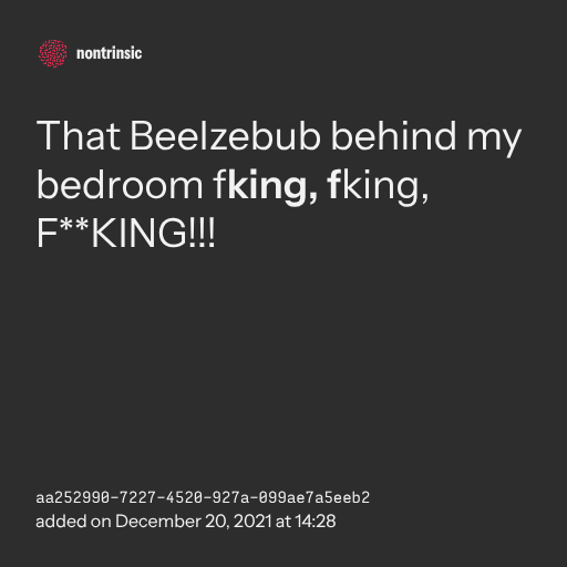 π€ bagikanThat Beelzebub behind my bedroom fking, fking, F**KING!!!