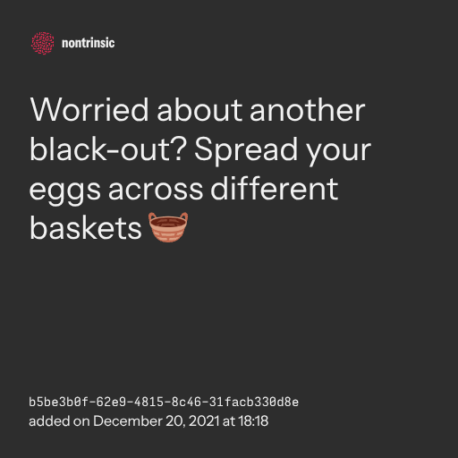 π€ bagikanWorried about another black-out? Spread your eggs across different baskets π§Ί