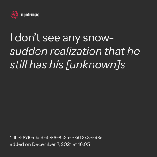π€ bagikanI don’t see any snow- sudden realization that he still has his [unknown]s