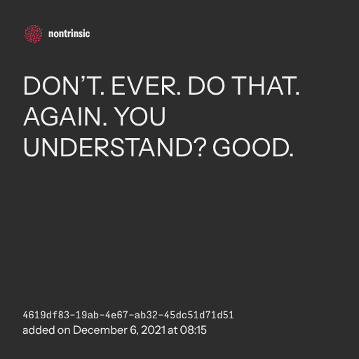 π€ bagikanDON’T. EVER. DO THAT. AGAIN. YOU UNDERSTAND? GOOD.