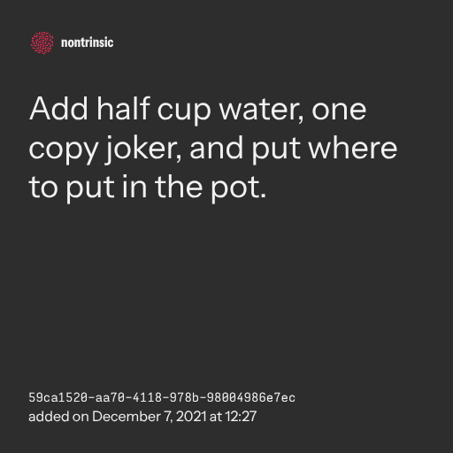π€ bagikanAdd half cup water, one copy joker, and put where to put in the pot.