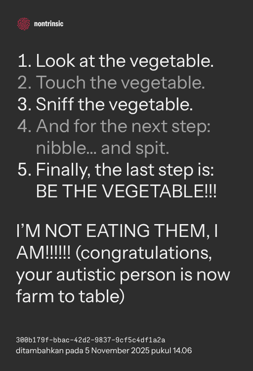 I’M NOT EATING THEM, I AM!!!!!! (congratulations, your autistic person is now farm to table)