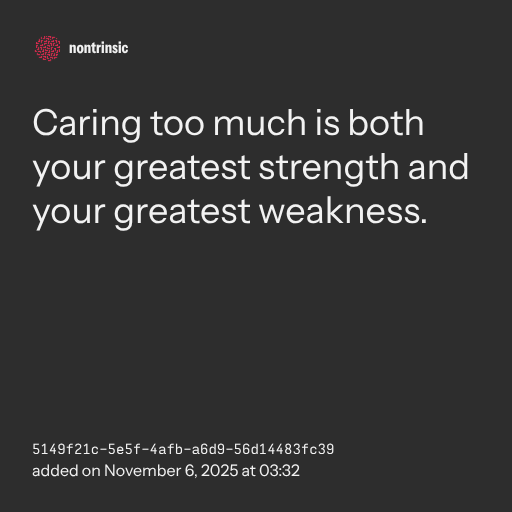 π€ bagikanCaring too much is both your greatest strength and your greatest weakness.