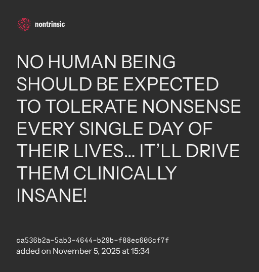 π€ bagikanNO HUMAN BEING SHOULD BE EXPECTED TO TOLERATE NONSENSE EVERY SINGLE DAY OF THEIR LIVES… IT’LL DRIVE THEM CLINICALLY INSANE!