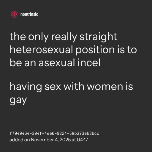 π€ bagikanthe only really straight heterosexual position is to be an asexual incel