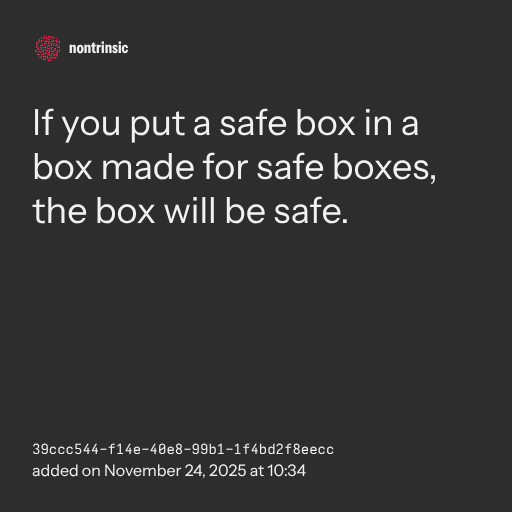 π€ bagikanIf you put a safe box in a box made for safe boxes, the box will be safe.