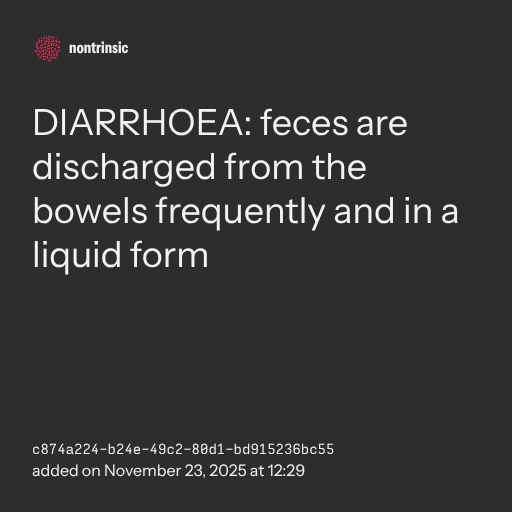 π€ bagikanDIARRHOEA: feces are discharged from the bowels frequently and in a liquid form