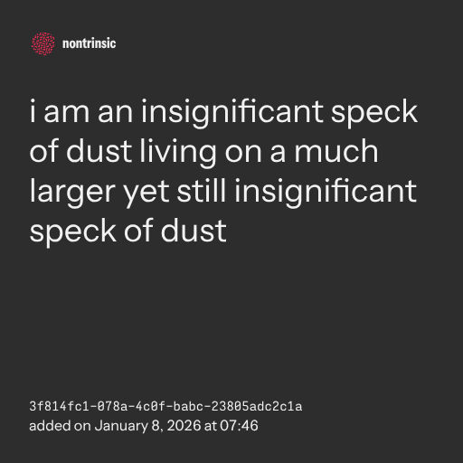 поделитьсяi am an insignificant speck of dust living on a much larger yet still insignificant speck of dust