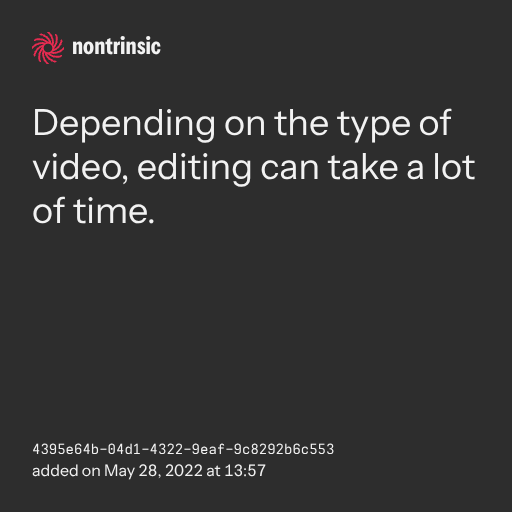 поделитьсяDepending on the type of video, editing can take a lot of time.
