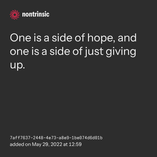 поделитьсяOne is a side of hope, and one is a side of just giving up.