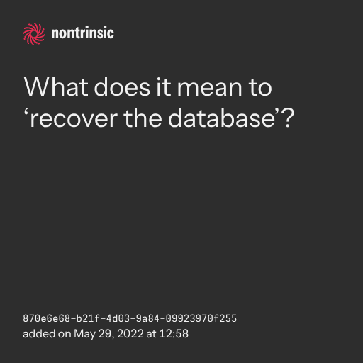 поделитьсяWhat does it mean to ‘recover the database’?