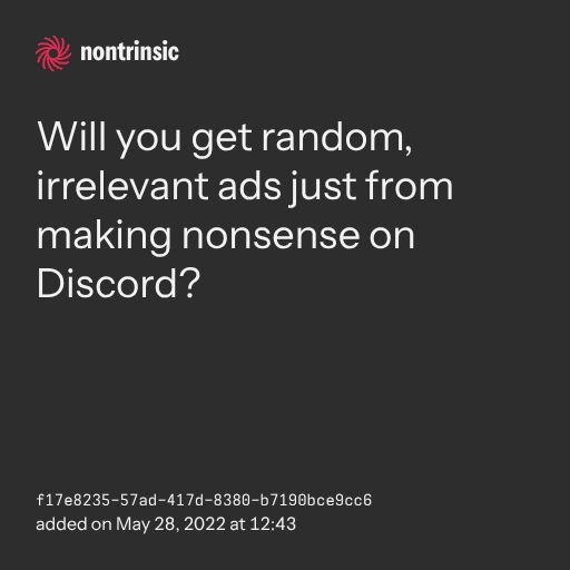 поделитьсяWill you get random, irrelevant ads just from making nonsense on Discord?