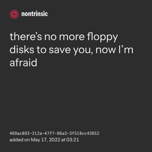 поделитьсяthere’s no more floppy disks to save you, now I’m afraid