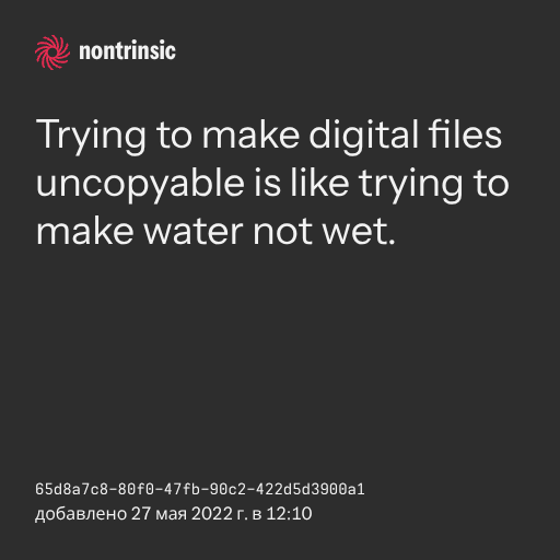 поделитьсяTrying to make digital files uncopyable is like trying to make water not wet.