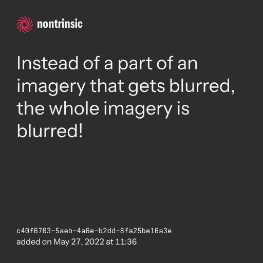 поделитьсяInstead of a part of an imagery that gets blurred, the whole imagery is blurred!