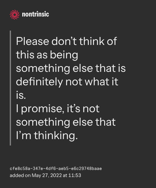 поделитьсяPlease don’t think of this as being something else that is definitely not what it is.