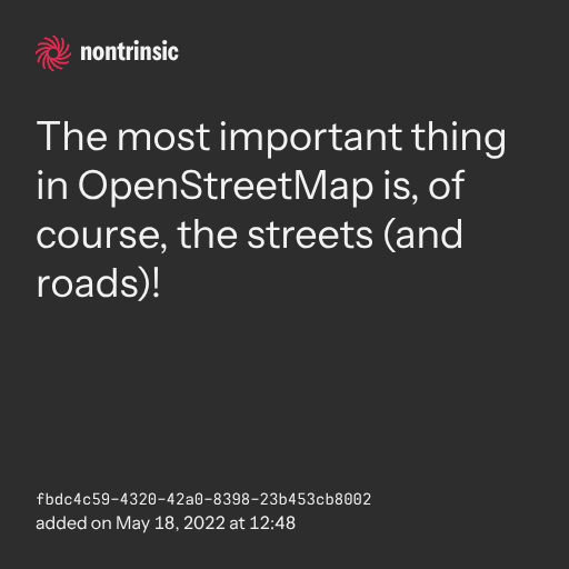 поделитьсяThe most important thing in OpenStreetMap is, of course, the streets (and roads)!