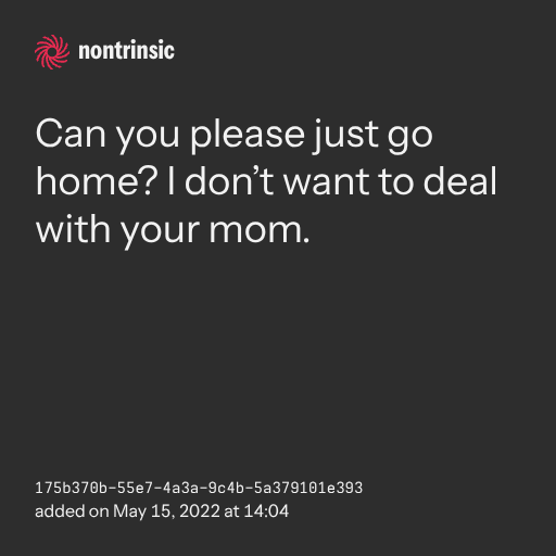 поделитьсяCan you please just go home? I don’t want to deal with your mom.