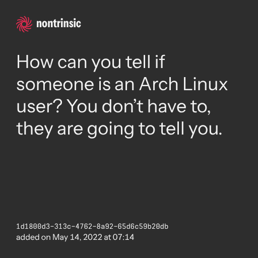 поделитьсяHow can you tell if someone is an Arch Linux user? You don’t have to, they are going to tell you.
