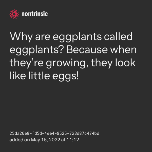 поделитьсяWhy are eggplants called eggplants? Because when they’re growing, they look like little eggs!