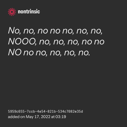 No, no, no no no, no, no, NOOO, no, no, no, no no NO no no, no, no, no.