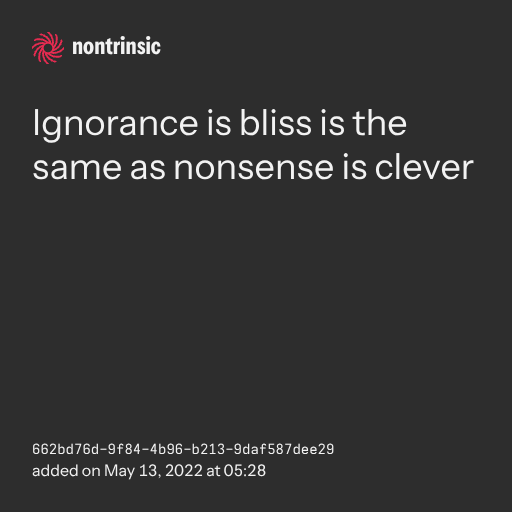 поделитьсяIgnorance is bliss is the same as nonsense is clever