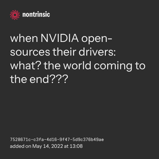 поделитьсяwhen NVIDIA open-sources their drivers: what? the world coming to the end???