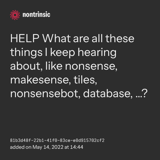 поделитьсяHELP What are all these things I keep hearing about, like nonsense, makesense, tiles, nonsensebot, database, …?