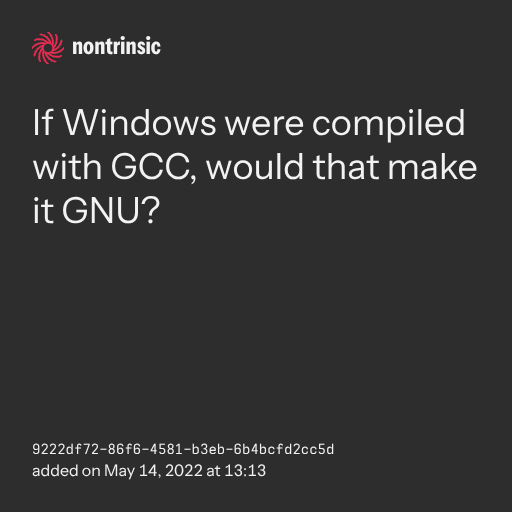 поделитьсяIf Windows were compiled with GCC, would that make it GNU?