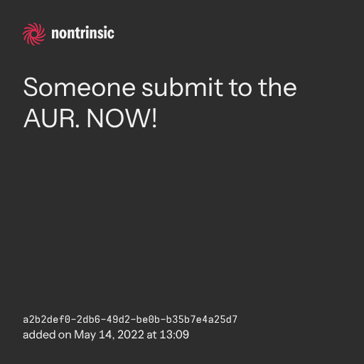 поделитьсяSomeone submit to the AUR. NOW!